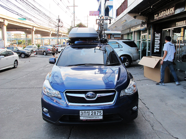 | ซูบารุ ติดตั้ง แร็คหลังคา ตรงรุ่น XV + กล่อง RoofBox บนหลังคา THULE Touring 200 M |