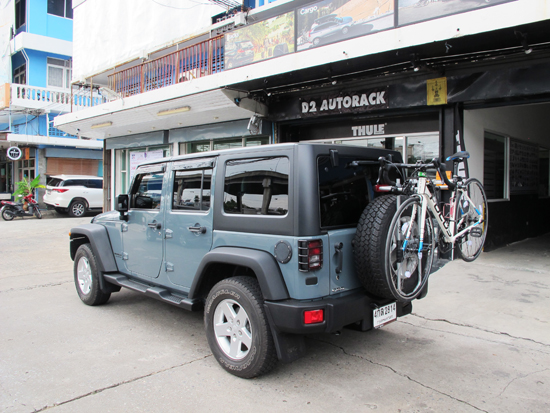 แร็คจักรยาน สำหรับรถมียางอะไหล่ THULE SpareMe 963 ( 2 bike) สามารถบรรทุกจักยานได้ 2 คัน ยึดจับที่ยางอะไหล่ ไม่ต้องถอดยางอะไหล่ออก มีระบบ lock ป้องกันหาย ทั้งตัวจักรยาน และ แร็คจักรยาน ถอดเข้าออกได้ เมื่อไม่ใช้งาน